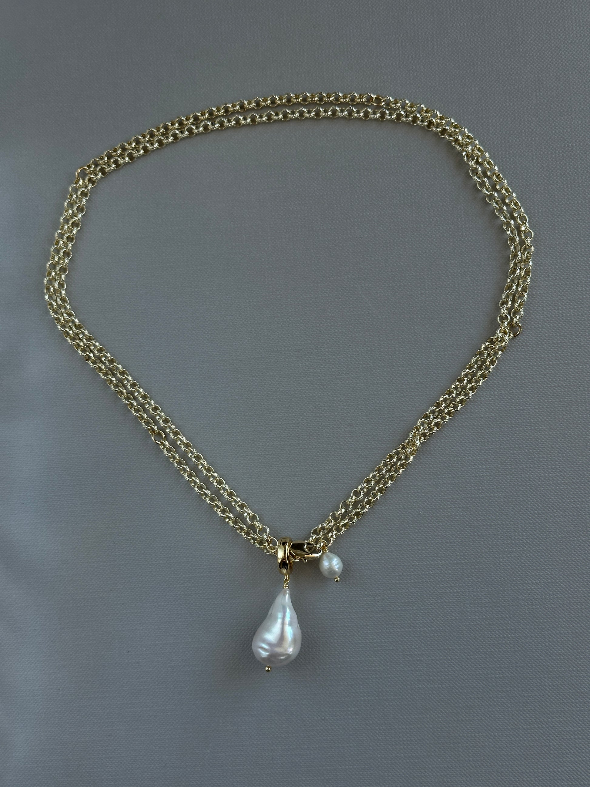 - Materials: 14k gold plated brass findings, freshwater baroque pearl, freshwater pearl