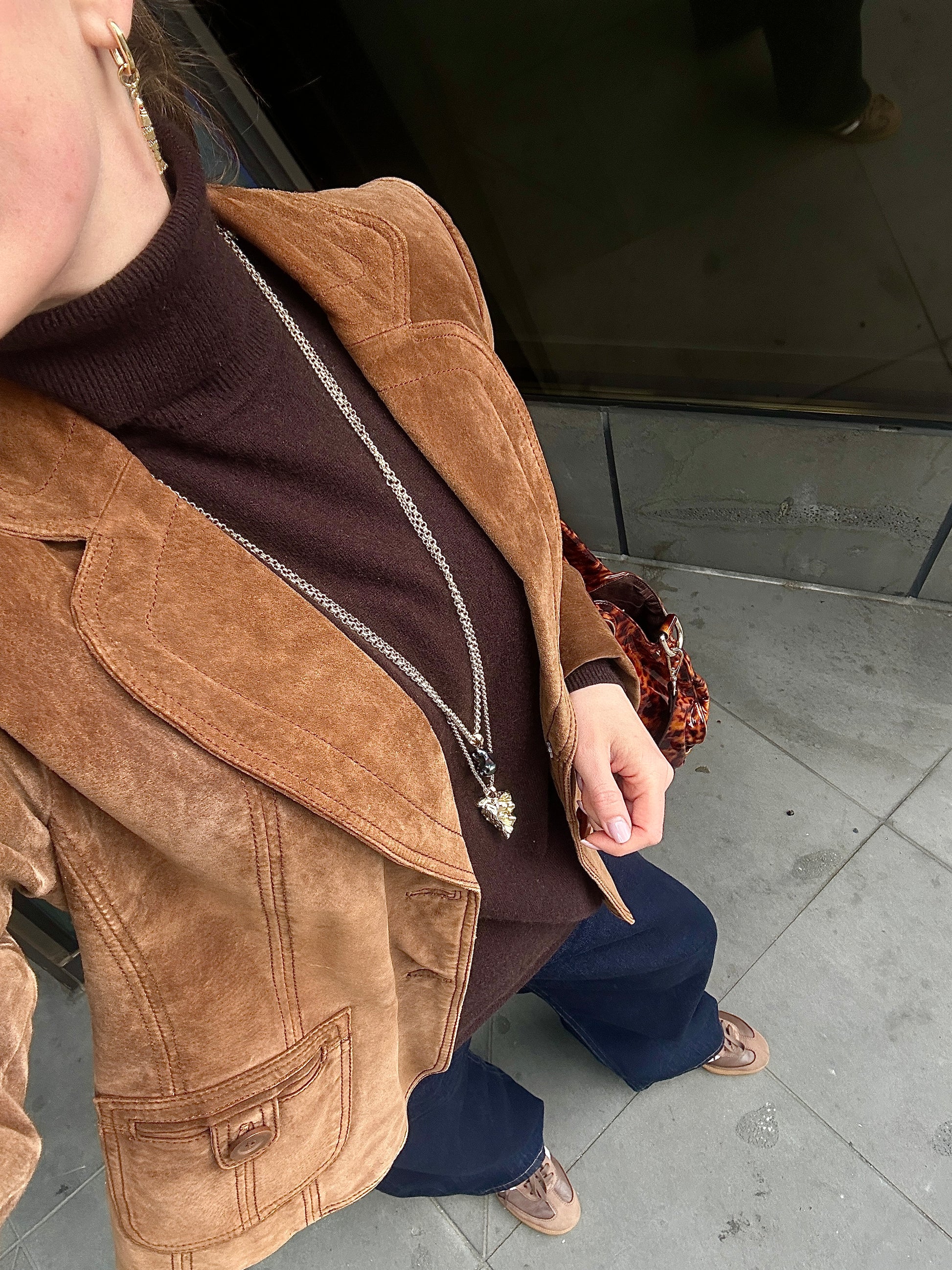 - Materials: natural freshwater pearl ,14k gold/ rhodium plated brass, faux suede